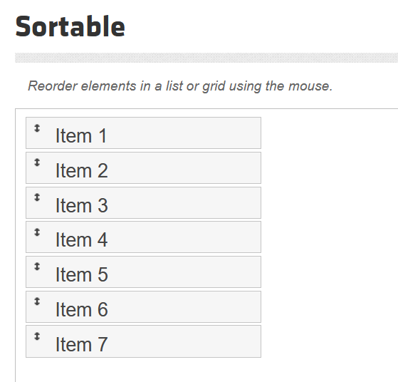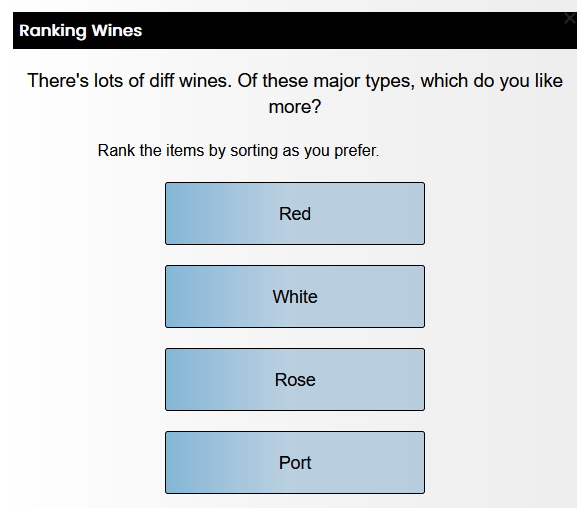 The second jQuery UI interaction that aligns well with a type of question is Sortable. A sortable collection is one in which the user can drag the elements into different slots, reordering them. I envisioned a question such as “Rank the members of The Beatles from first to fourth.”